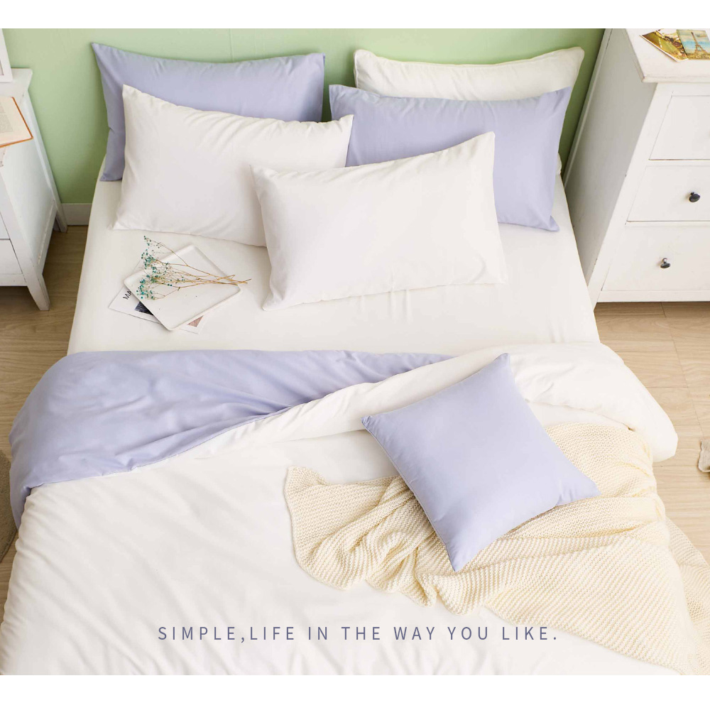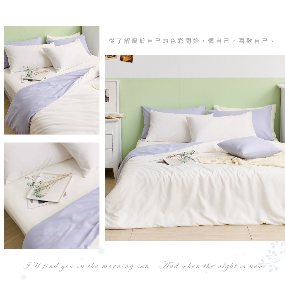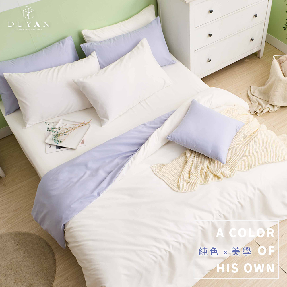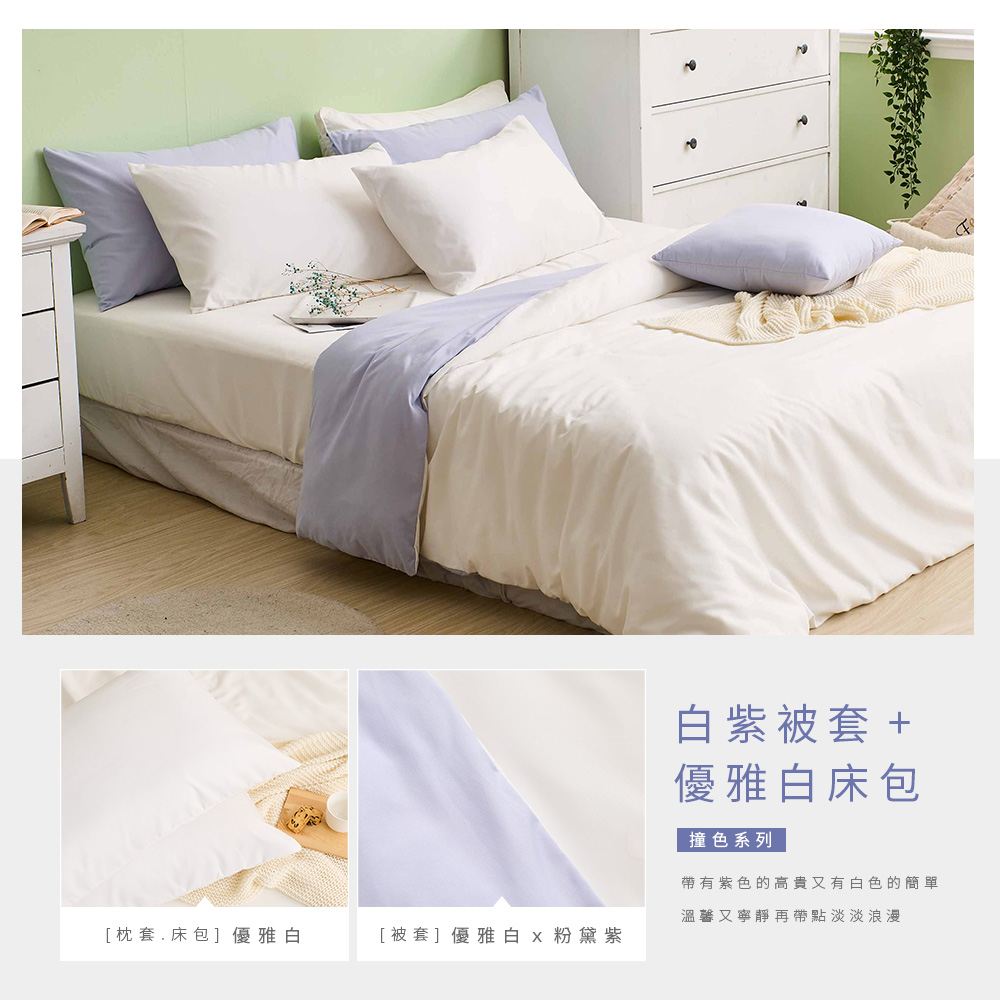 【DUYAN 竹漾】舒柔棉 單人/雙人/加大/ 床包被套組 床包+被套 台灣製 - 優雅白床包+白紫被套