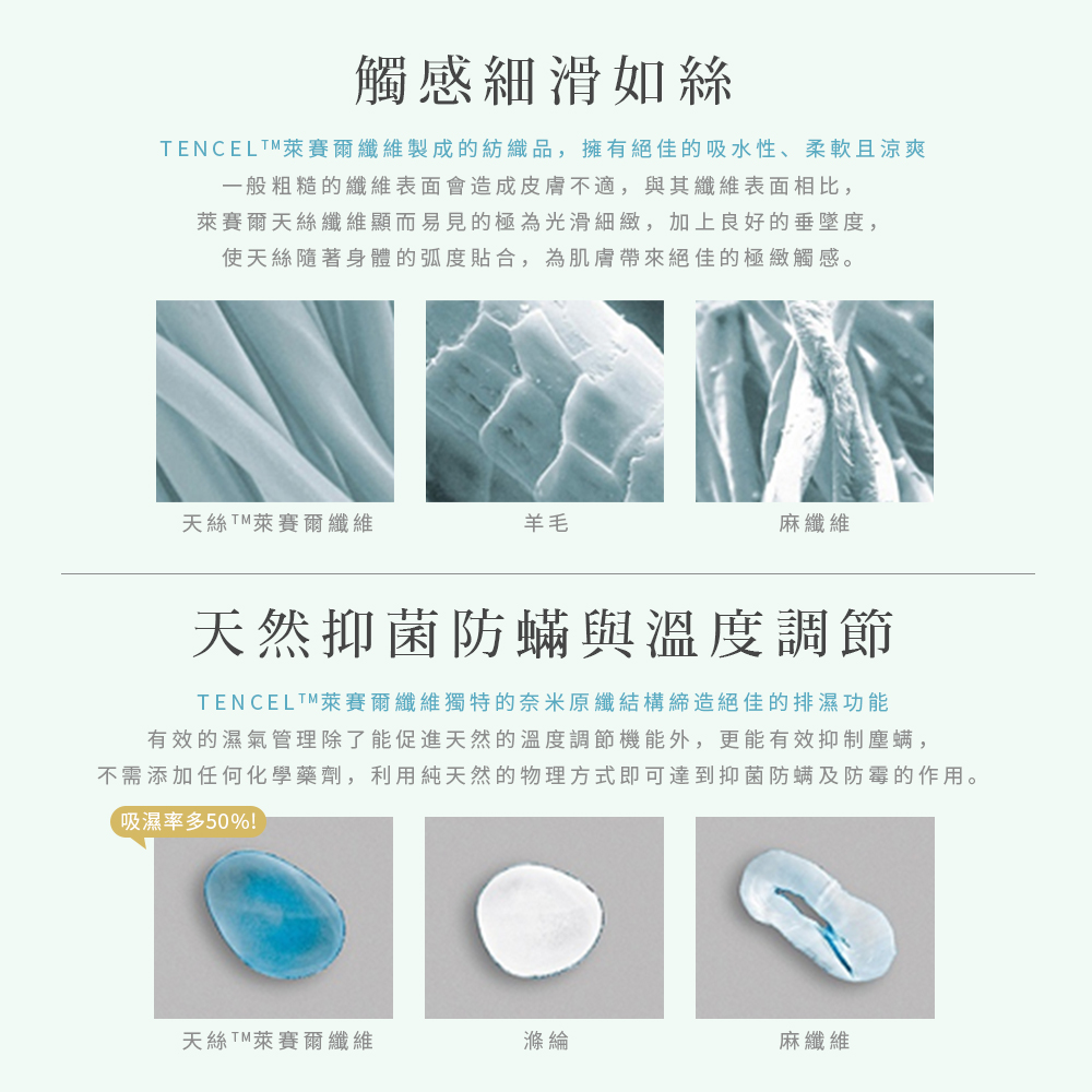 竹漾 ●絲滑柔順,親膚不刺激 ●如蠶絲般細緻,光滑亮麗 ●抗菌防蟎,減少細菌滋生 ●吸濕排汗機能,良好濕度調節 ●天然木漿纖維,親膚柔軟