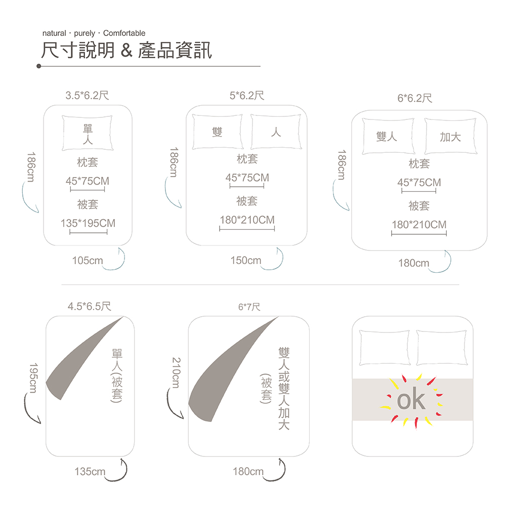 單人薄床包3.5x6.2尺(105*186cm) x1 / 可包覆床墊厚度:約35公分±5%