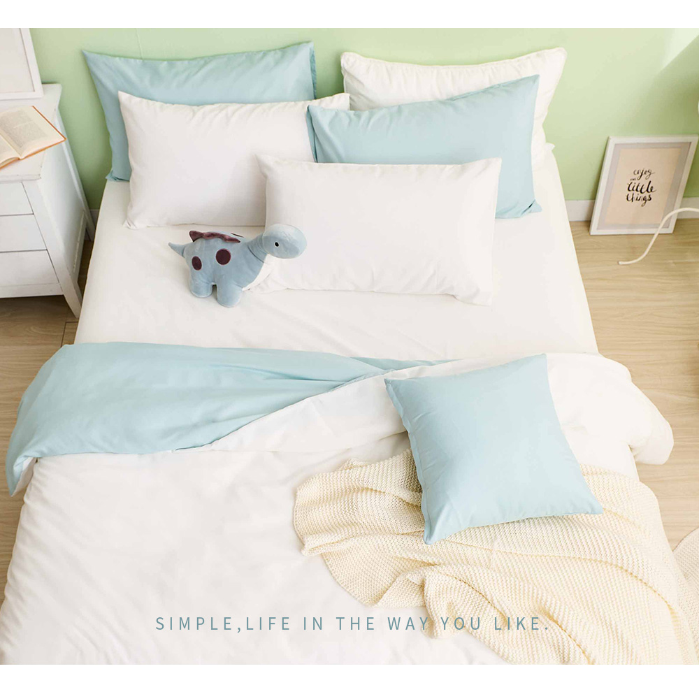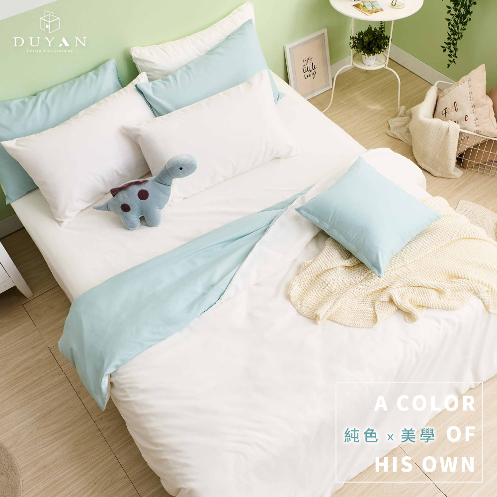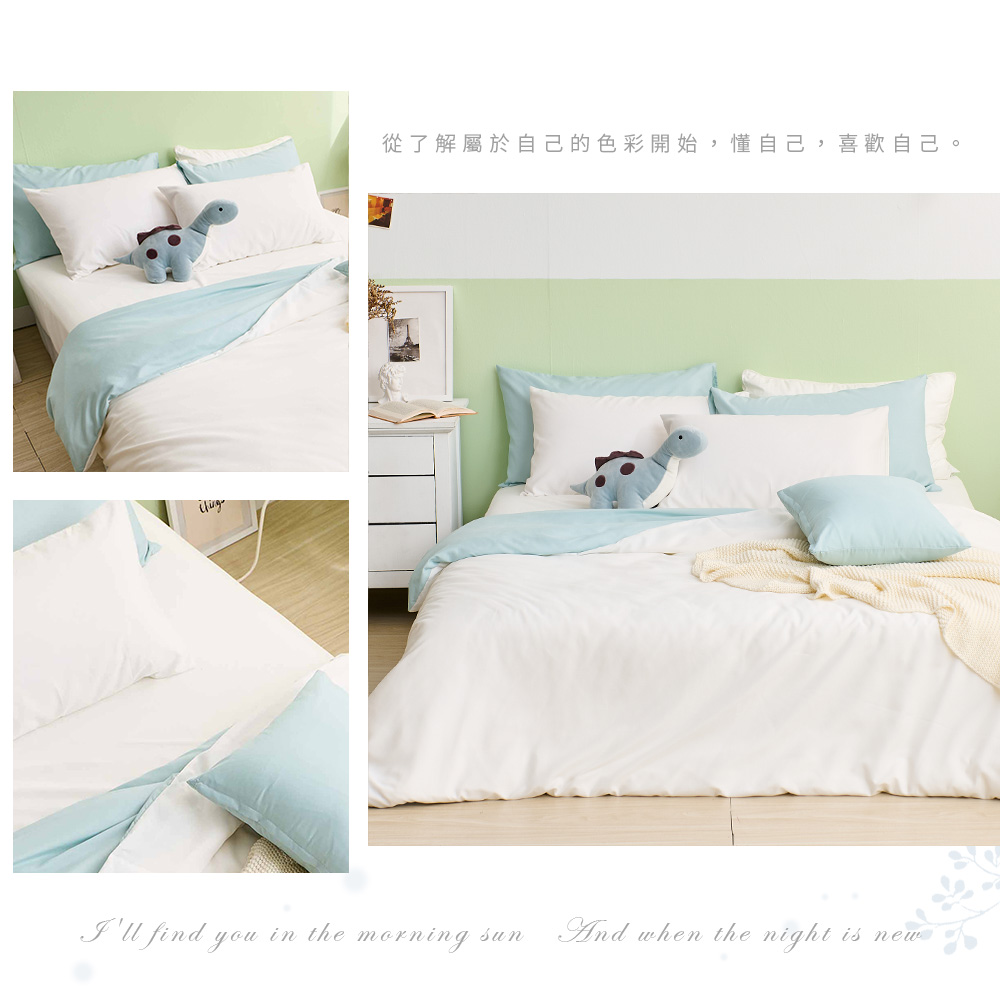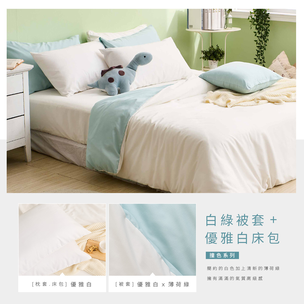 【DUYAN 竹漾】舒柔棉 單人/雙人/加大/ 床包被套組 床包+被套 台灣製 - 優雅白床包+白綠被套