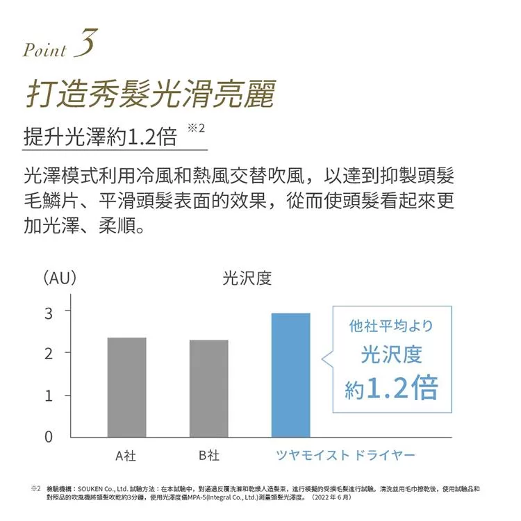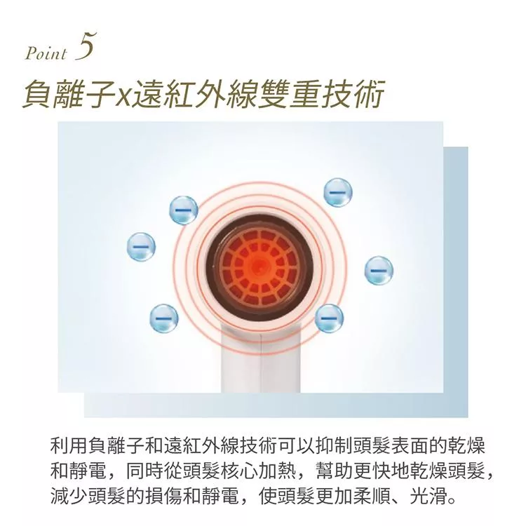 .負離子柔順光澤秀髮,兼具保濕功能