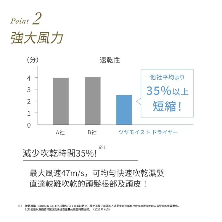 .最大風速47m/s減少35%吹髮時間